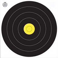 Les tirs se font sur des cibles circulaires bicolores (noir et jaune) de différents diamètres selon la distance de tir.