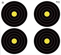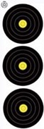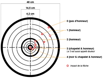 Les tirs se font sur des cibles circulaires bicolores (noir et jaune) de différents diamètres selon la distance de tir.